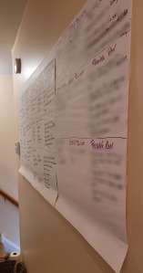 How am I doing? I should be reviewing sections 19-24 today, but I am a little behind. The initial goal of this passthrough is to review each section for areas which will need revision and which are good to keep. I made it through section 12 before letting myself get a little too caught up in the sections which need revision, and I spent last night revising one section. Oops. It’s hard to label a section as “revision needed” without actually starting the rewrite. However, I have reset my mind with the goal of this first review and most of the day to catch up.